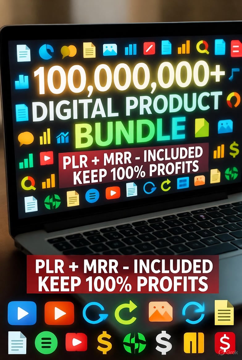 Start your passive income journey today with this massive 100 Million PLR & MRR Digital Products Bundle!